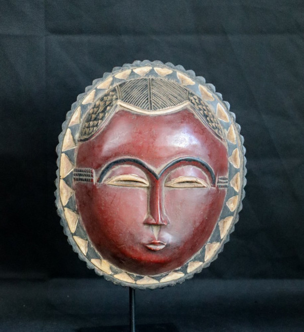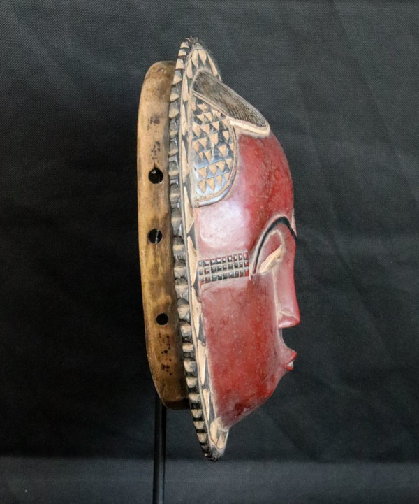Mask symbolizing the sun. It is hung in the house so that light can enter the family. Nice mask collected in Abidjan.