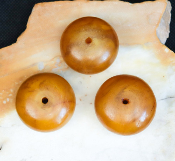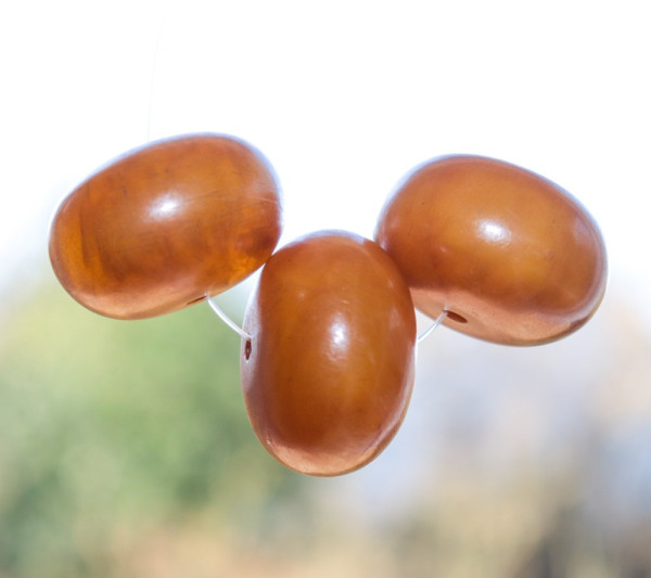 3 African amber beads (phenolic resin)