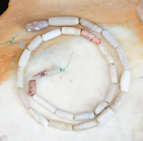 Strand of 28 old agate beads