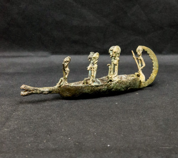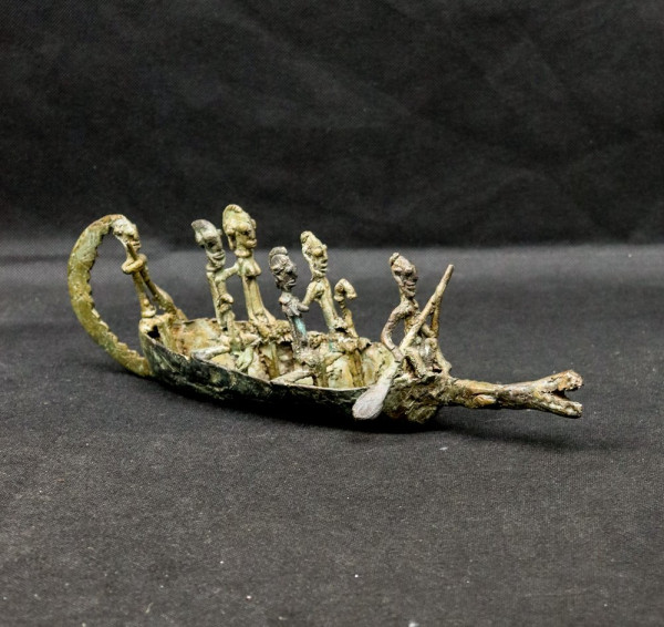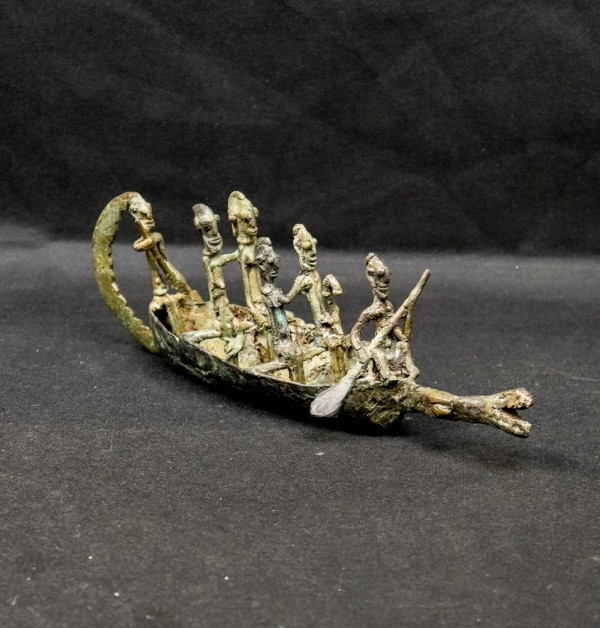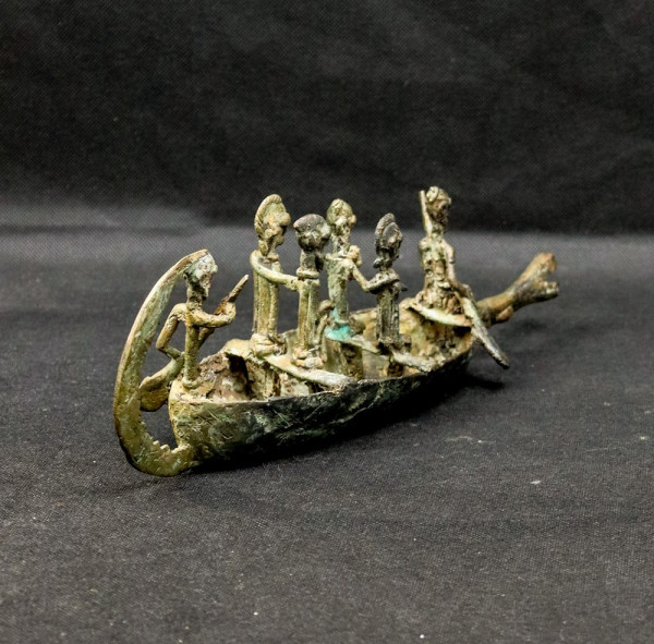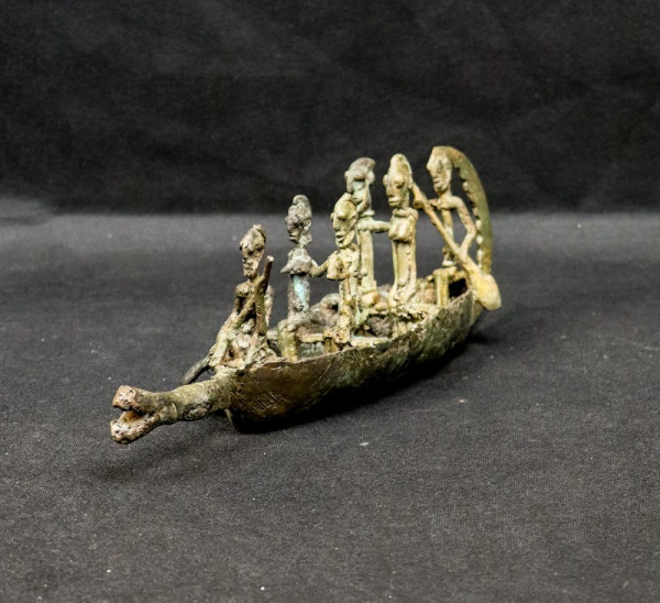 Interpretations of this object are numerous. It can be thought that this crocodile shaped pirogue and its two couples of passengers commemorate the crossing of the Niger River by dogon people when they left the Mande area and went to inhabitate the Bandiagara cliff.