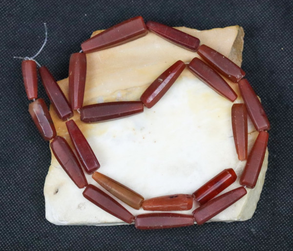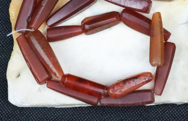 Glass beads imitating carnelian. Some of them have small chips, barely visible.