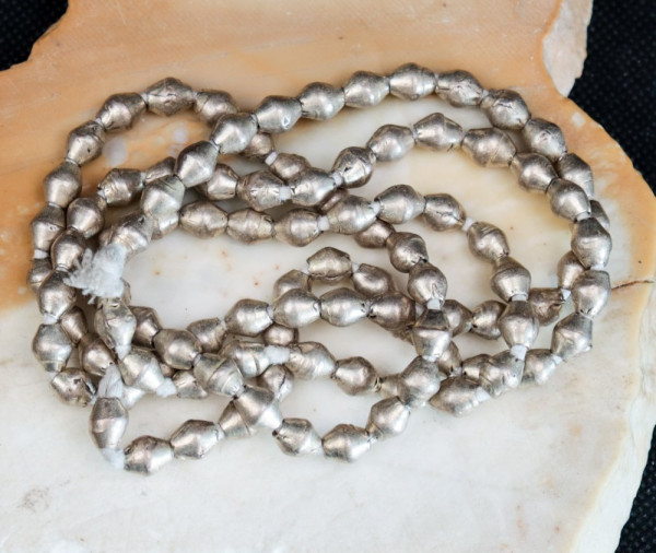 Strand of 100 beads in silvered metal