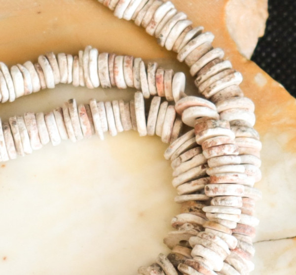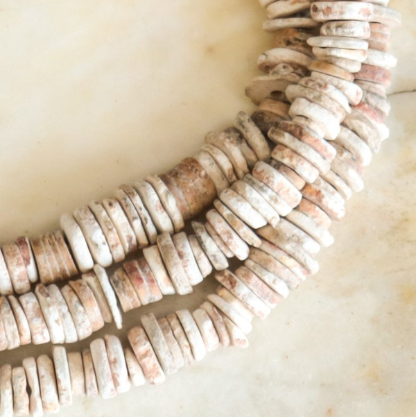 Old African ostrich egg shell heishi trade beads