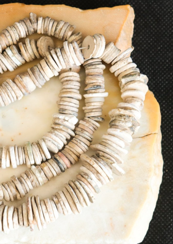 Old African ostrich egg shell heishi trade beads