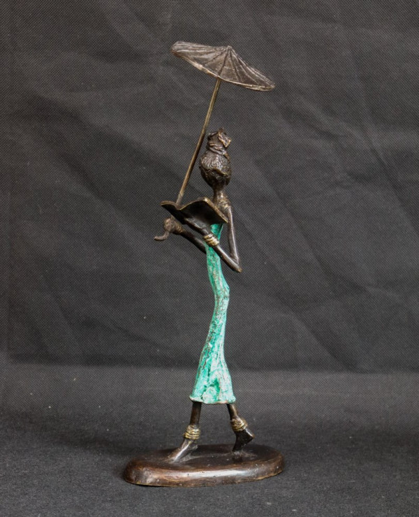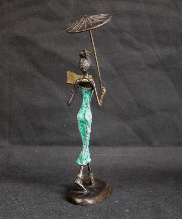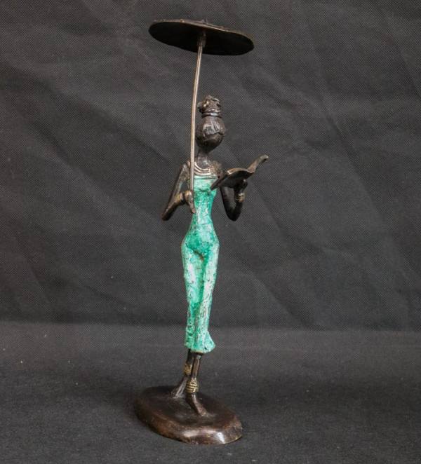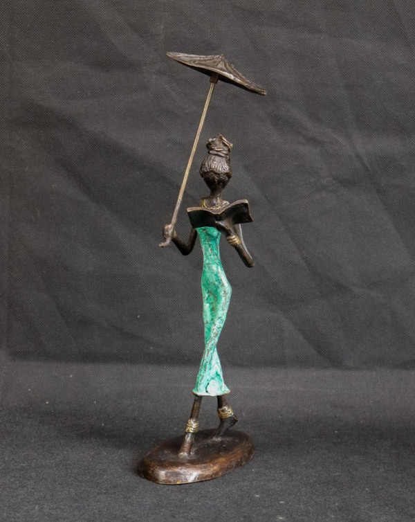 Woman reading with a umbrella (bronze)